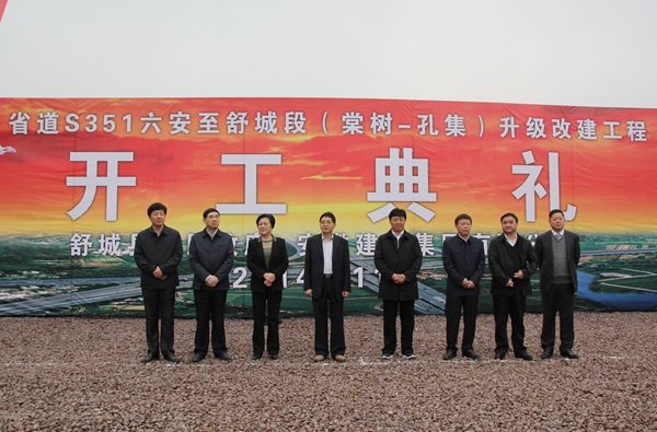 11月6日上午,省道S351六安至舒城段(棠樹至孔集)升級改建工程開工典禮于六安孔集鎮(zhèn)隆重舉行,舒城縣四大領(lǐng)導(dǎo)班子成員、各職能部門及沿線鄉(xiāng)鎮(zhèn)主要負(fù)責(zé)人,建工集團(tuán)副總經(jīng)理王元曦,公司董事長孫學(xué)軍等出席了開工典禮。