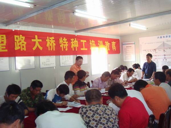 為進(jìn)一步加大項(xiàng)目部安全生產(chǎn)培訓(xùn)教育力度,切實(shí)提高特種作業(yè)人員的安全素質(zhì)和安全操作技能水平,確保在崗特種作業(yè)人員100%持證上崗。淠望路大橋項(xiàng)目部在公司人力資源部的指導(dǎo)和幫助下,以“安全生產(chǎn)月活動(dòng)”為契機(jī),于6月3日至4日,組織了一期特種作業(yè)人員上崗培訓(xùn)和復(fù)審培訓(xùn)再教育活動(dòng)。邀請(qǐng)了省安監(jiān)局特種作業(yè)培訓(xùn)中心的老師直接來(lái)到一線,對(duì)項(xiàng)目部及各下屬作業(yè)隊(duì)的電工、焊工、起重工等特種作業(yè)人員進(jìn)行安全技術(shù)培訓(xùn),培訓(xùn)的主要內(nèi)容有特種作業(yè)人員安全生產(chǎn)法律法規(guī)知識(shí)、安全生產(chǎn)管理知識(shí)、安全技術(shù)理論知識(shí)等。