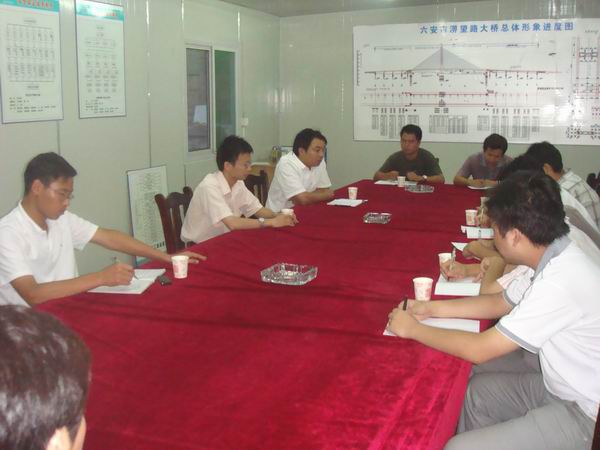 針對北岸引橋箱梁砼澆筑后,對成型構件出現的問題,由全體技術人員先找原因討論解決辦法,隨后,崔總對所提出問題逐一進行了原因分析,提出了解決的辦法。大家感到這種有針對性地培訓,接受的快,收效很大。最后,項目經理江仲明要求在當前工程沖刺關鍵時刻,所有技術人員要切實增強質量意識,強化質量工作責任,加強質量考核工作,并強調各部門、各作業(yè)隊要對檢查出的質量問題嚴肅處理,認真落實整改。
