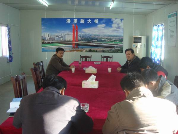 1121,安徽建工集團公司郭道真主任一行,在公司總經(jīng)理汪衛(wèi)東、安全生產(chǎn)部經(jīng)理黃勁松的陪同下,來到六安淠望路大橋項目檢查安全文明示范工地創(chuàng)建工作。