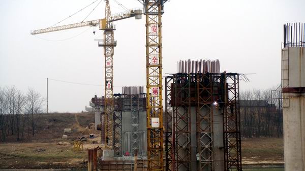 孫局長一行在項目經(jīng)理梅占勝同志的陪同下,一起走上大堤視察了施工現(xiàn)場,并詢問了大橋施工的基本情況。梅占勝一一作了匯報,孫局長聽完匯報后,對項目上為了節(jié)后上部結(jié)構(gòu)的正常施工而搶抓下部工程施工的計劃比較滿意,同時指出,三荻路項目市里今年降給予更大的關(guān)注,你們要抓緊施工,要注意質(zhì)量,也要重視安全,尤其是上部施工中的安全。