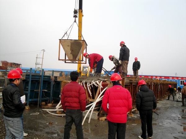 我部人員自正月初八進場以來,克服近半個月的連續(xù)陰雨天氣,精心準備,合理組織,完成了預(yù)制場建設(shè)、材料進場、設(shè)備標定調(diào)試、標準實驗等一系列工作,從而保證了此次箱梁的順利澆筑。此次澆筑,是我部拌合站建成以來,首次投入正式結(jié)構(gòu)工程的生產(chǎn),也拉開了下一步規(guī)模生產(chǎn)的序幕。